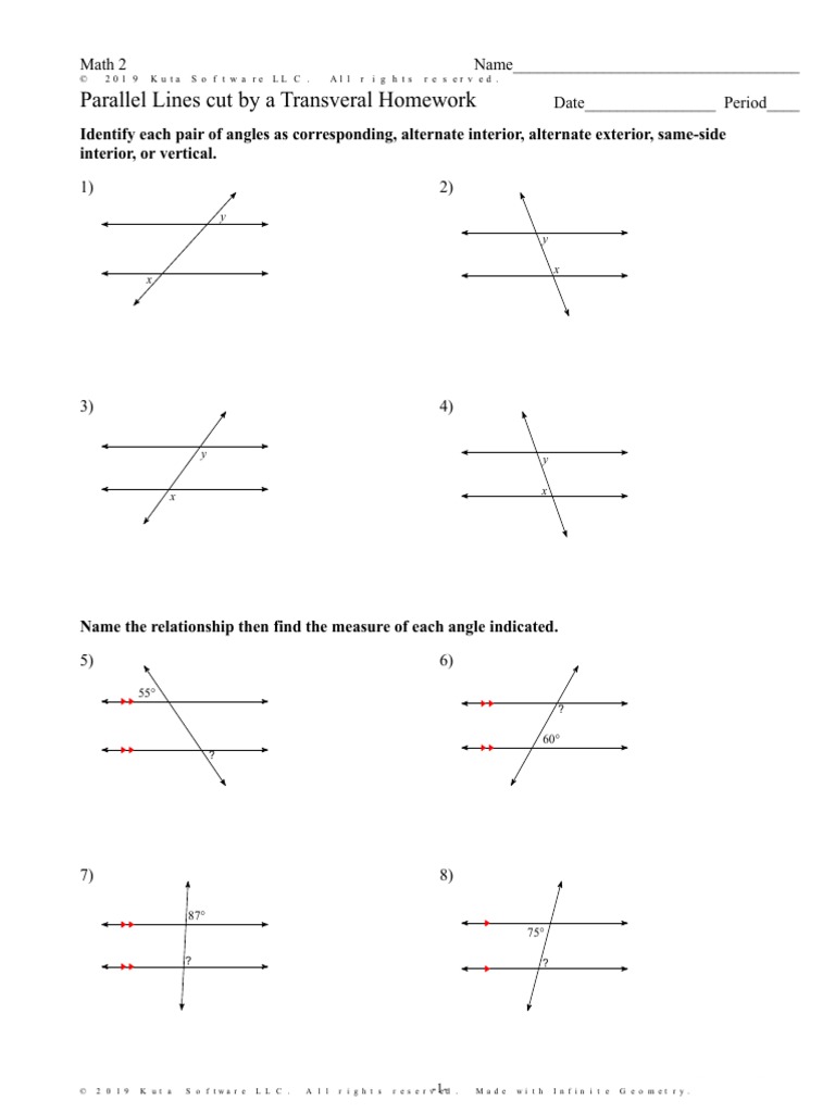 Parallel Lines Cut By A Transveral Homework Geometry Elementary Geometry